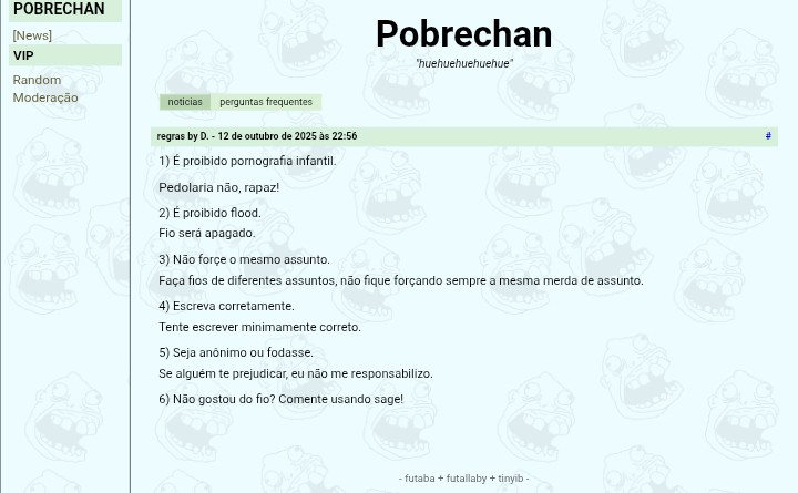Você foi o mesmo cara que criou o último Pobrechan? Coincidiu com o início do 14chan também, mas não durou nem um mês direito.